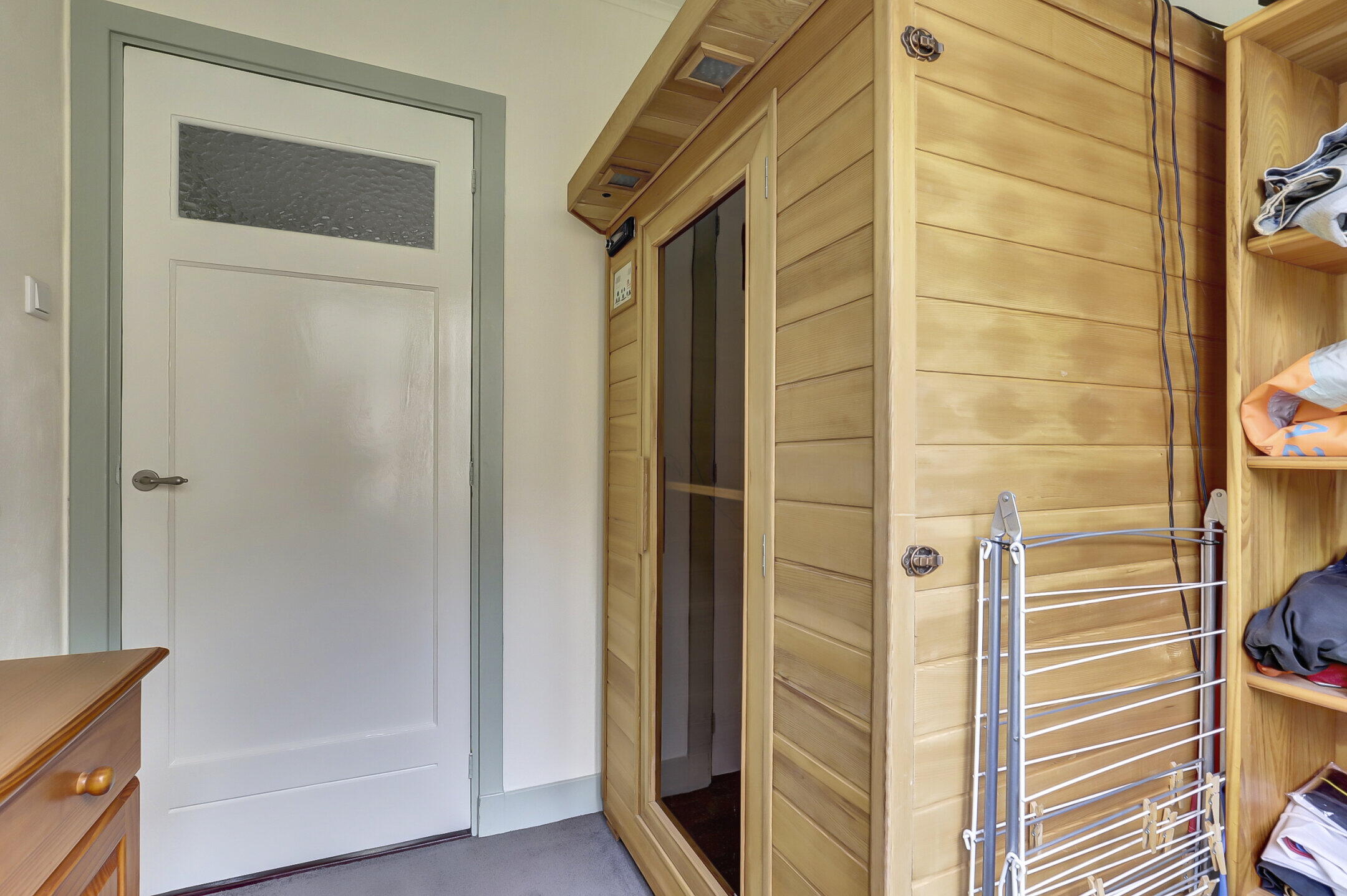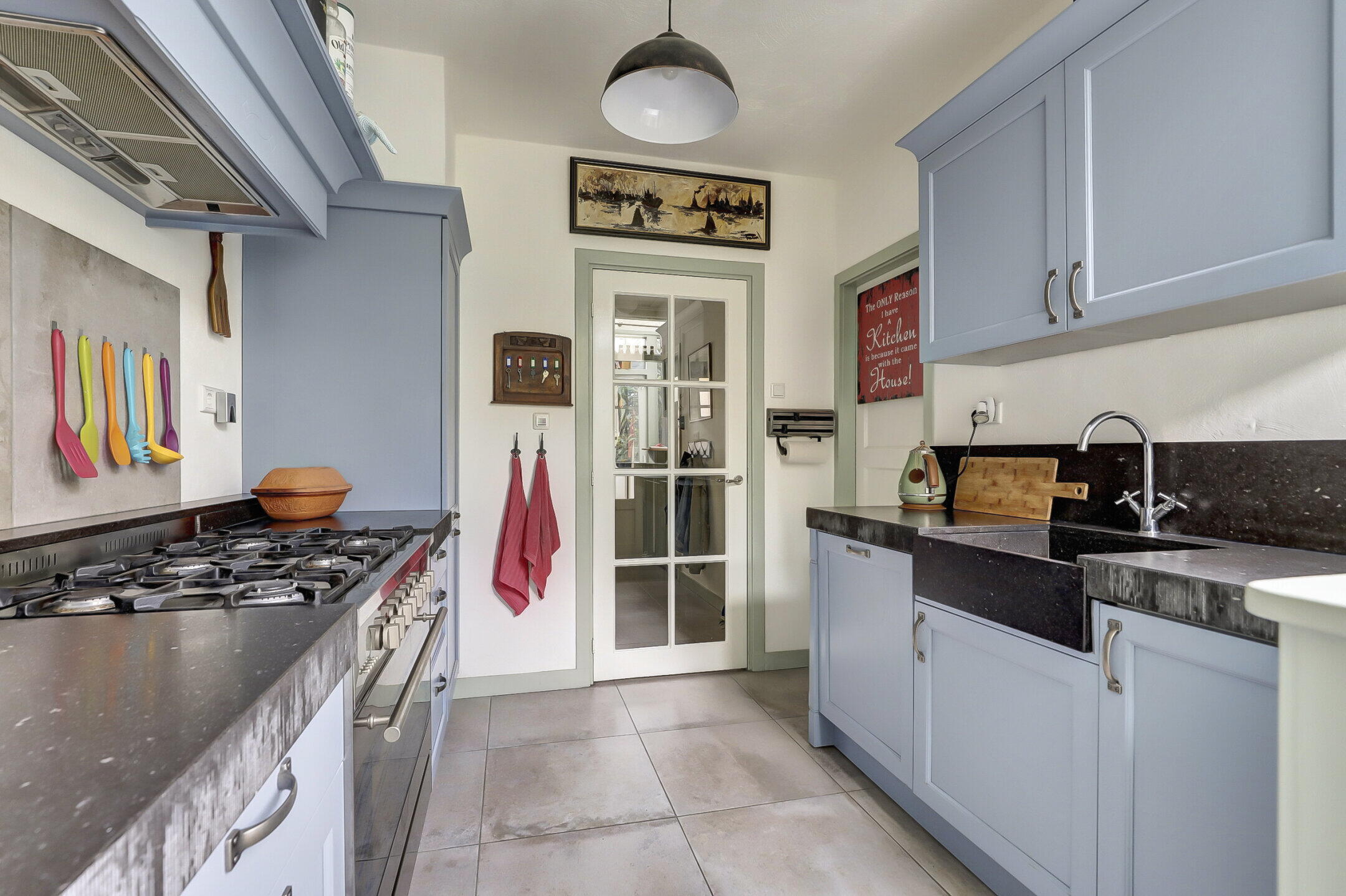Begane grond: entree met portaal (vestibule) en ontvangsthal met trapopgang, trapkast en toilet. Magnifieke en suite woonkamer met twee aanpaste rookkanalen, vaste kasten en een verbinding naar de superlichte tuinkamer. Dichte keuken met een modern keukenblok in een parallelle opstelling met ingebouwde apparatuur. Toegang naar een praktische, verrassend ruime bijkeuken.