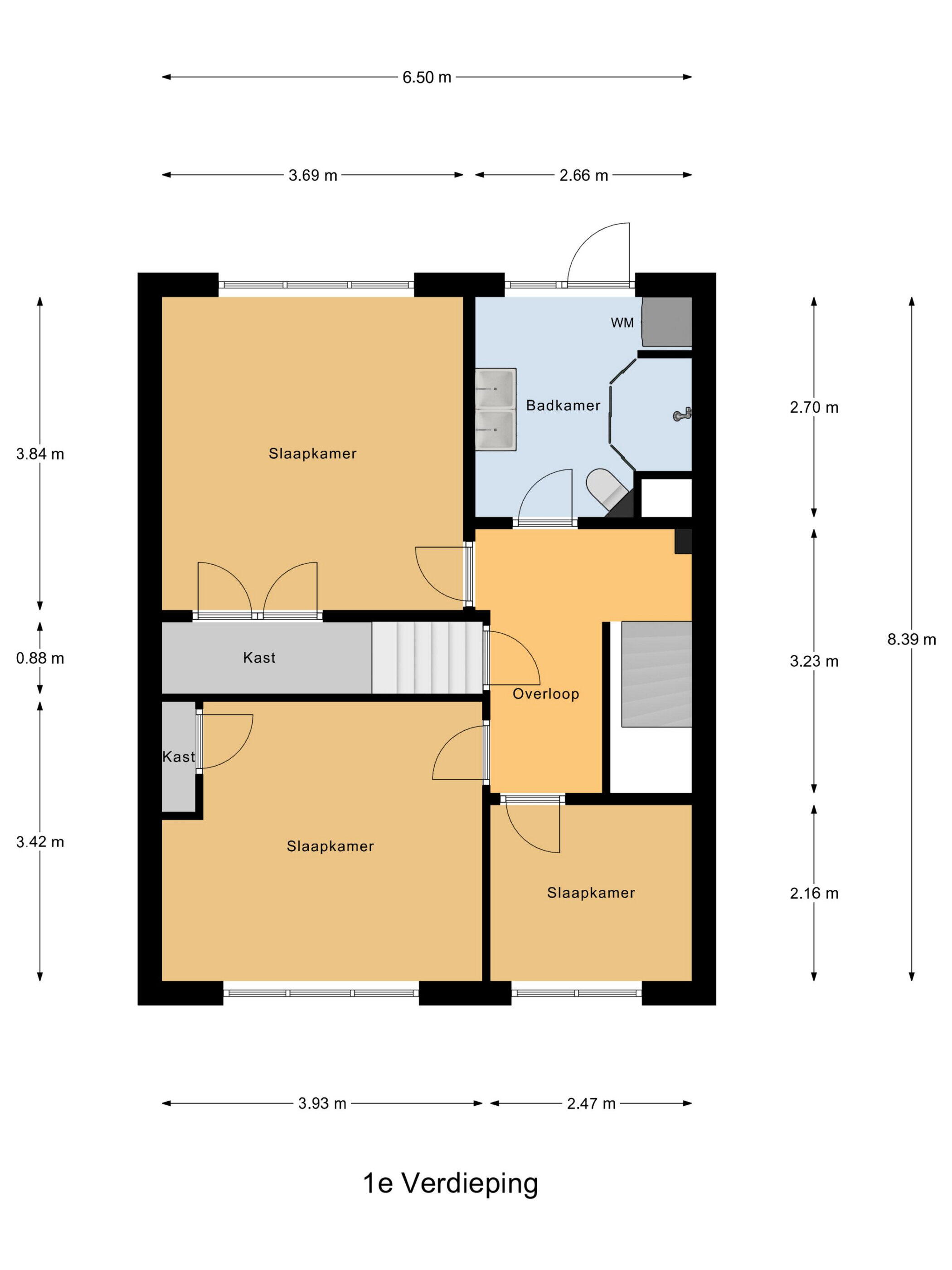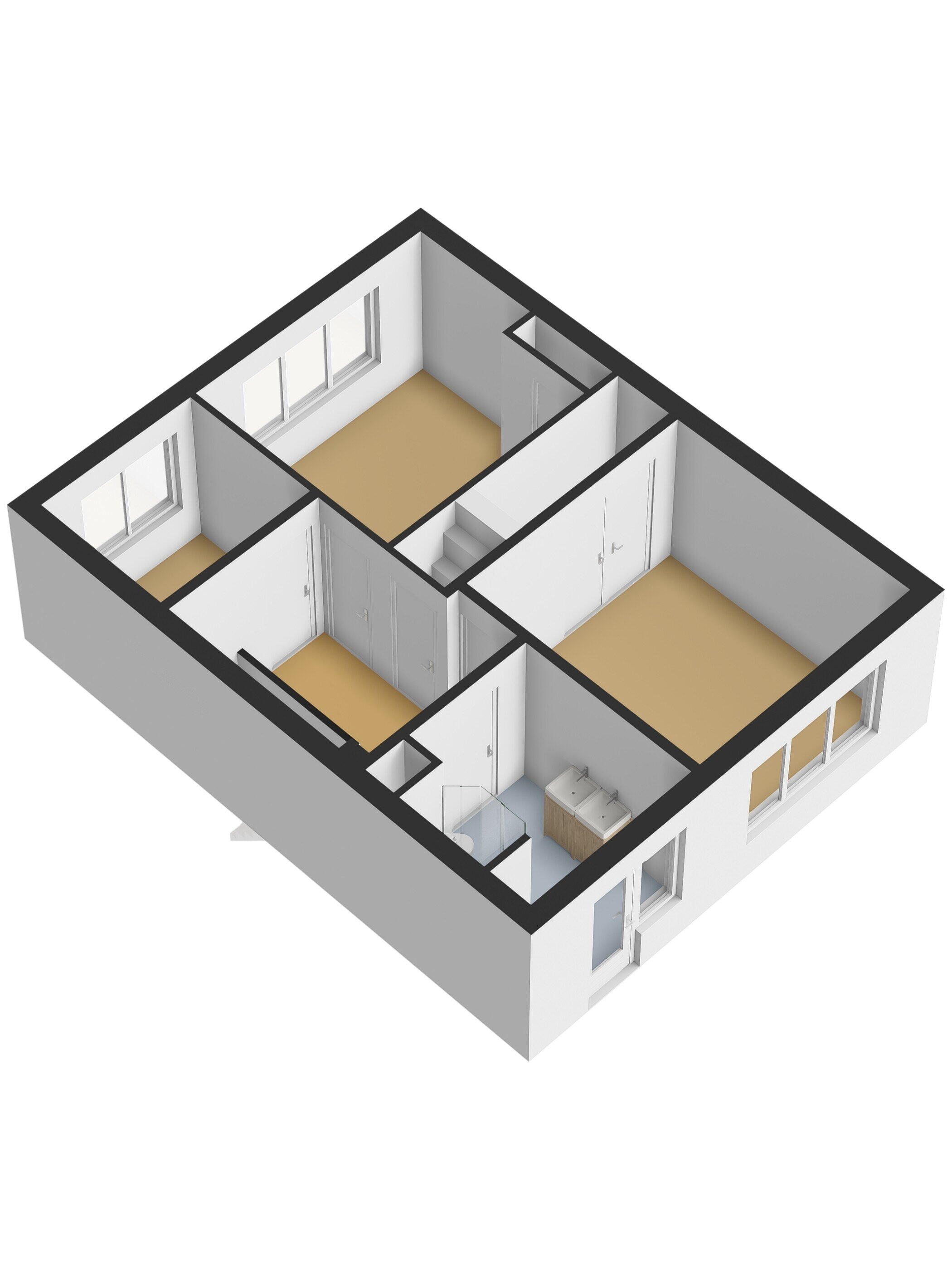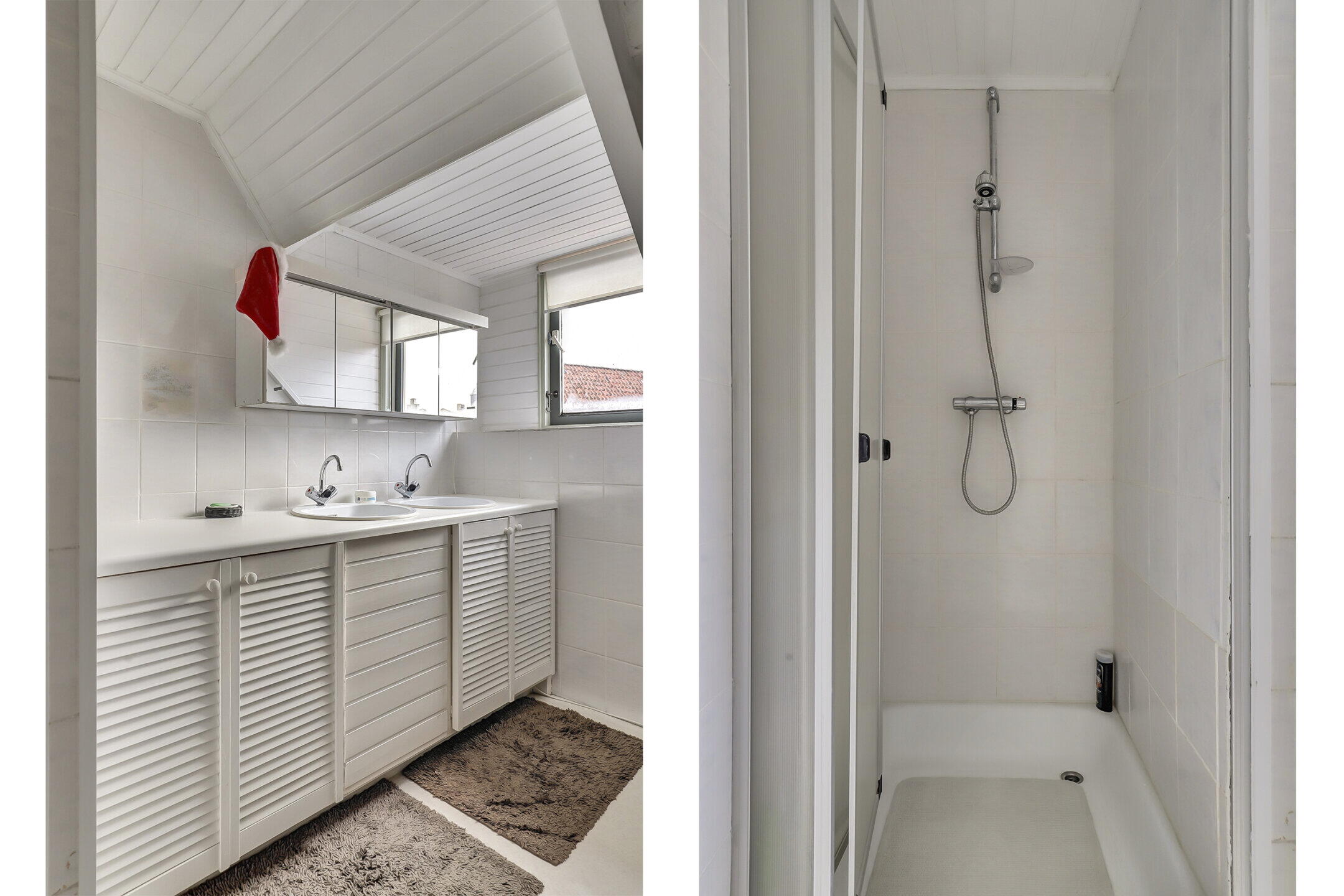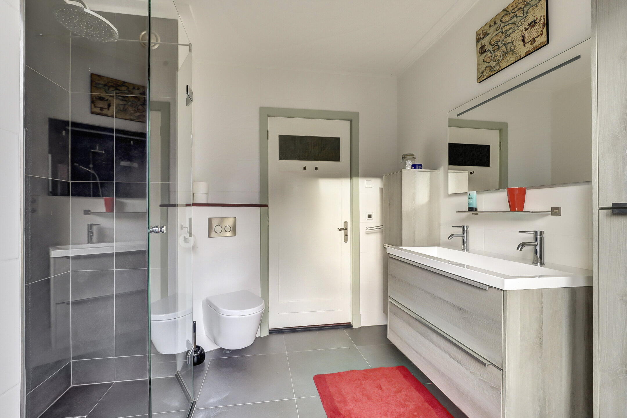Eerste verdieping: ruime overloop, drie slaapkamers en een badkamer (2016) met inloopdouche, toilet, wastafelmeubel en wasmachine-aansluiting. De slaapkamer aan de achterzijde is uitgevoerd met een inloopkast.